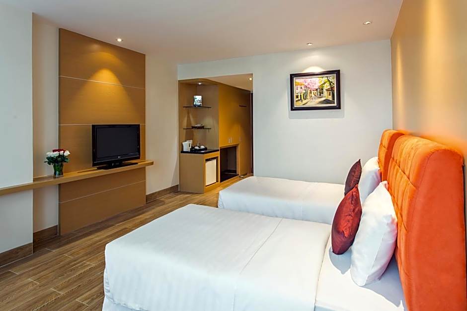 The hot tub is the standout feature of this twin room. Featuring free toiletries and bathrobes, this twin room includes a private bathroom with a walk-in shower, a bath and a bidet. The air-conditioned twin room features a flat-screen TV with satellite channels, a private entrance, soundproof walls, a mini-bar as well as city views. The unit has 2 beds.